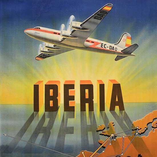30 carteles promocionales usados por Iberia durante la edad dorada de la aviación