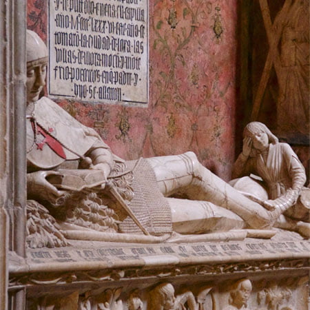 ¿Acaso es tan famosa por ser única estatua funeraria con esa postura, leyendo un libro en lugar de adoptar una disposición yacente? No, por ejemplo Leonor de Aquitania (muy anterior, izquierda) y Antonio del Correo (posterior, derecha) también leen inmersos en su sueño en piedra.