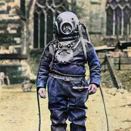 Tardaba tanto en ponerse el enorme y pesado traje de buzo (90 kilos) que, cada vez que se tomaba un descanso, solo se la quitaba la escafandra para comer y fumar su pipa.